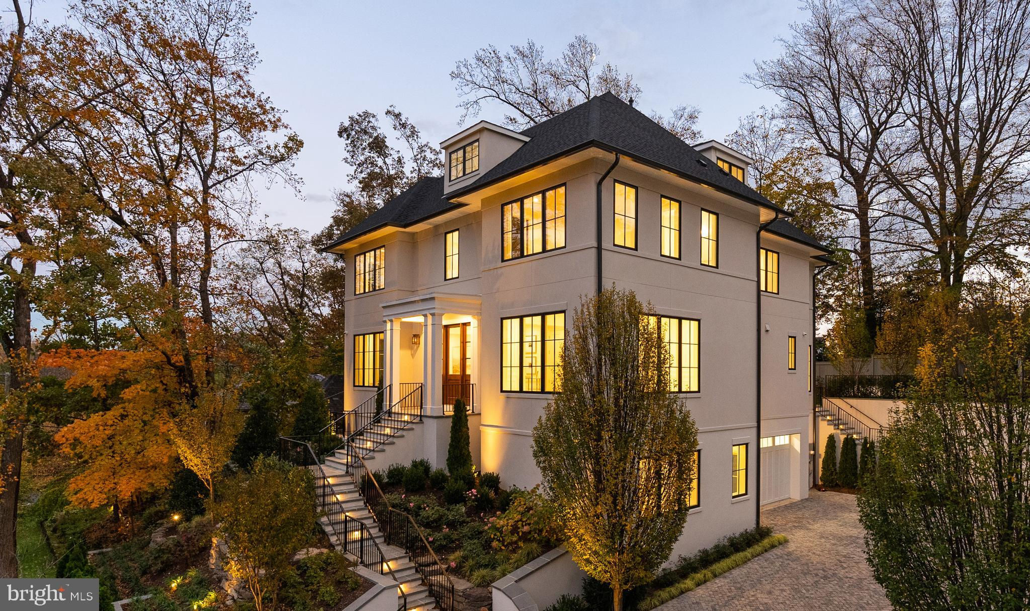 Experience refined living in this exceptional newly constructed residence developed by the renowned Danube Group in partnership with GTM Architects, interior designer M.S Vicas Interiors, Richardson and Associates Landscape Architecture, CAS Engineering, and Churilla Homes. With 7,684 square feet (8,755 sqft- including the garage and unfinished areas) of thoughtfully designed living space across four meticulously finished levels, this stucco-clad masterpiece combines timeless elegance with modern comforts. An elevator seamlessly connects all four floors, enhancing everyday convenience and accessibility. The home features 6 spacious bedrooms and 6.5 luxurious bathrooms, offering an abundance of space for both privacy and entertaining. The main level with its soaring 10-foot ceilings welcomes you with a gracious foyer, a private office, and a sophisticated formal dining room connected by a butler’s pantry with a walk-in pantry to the kitchen. The heart of the home is the open-concept gourmet kitchen and family room, anchored by a cozy fireplace. The designer chef’s kitchen boasts an oversized center island, high-end stainless-steel appliances, custom cabinetry, and an informal dining area surrounded by windows and beautiful views of the private and splendidly landscaped scenery. Glass doors open to a covered back porch featuring a second fireplace—perfect for year-round entertaining. Upstairs features majestic views of the surrounding neighborhood and Rock Creek Park. In addition, the second level showcases four well-appointed bedrooms, each with walk-in closets and en-suite baths, as well as a versatile sitting room. The opulent primary suite with its 14.5-foot high vaulted ceiling is a sanctuary for peace and relaxation. The suite boasts dual walk-in closets and a spa-inspired bath complete with separate vanities, a soaking tub, a large walk-in shower, and a private water closet. The third level offers a flexible loft space with a wet bar and balcony to take in the views, plenty of storage space, plus an additional bedroom, and a full bathroom—ideal for guests, a teen suite, or additional recreational space. The lower level spotlighting 10-foot ceilings is an entertainer’s dream with a spacious media and recreation room, full wet bar, optional glass-enclosed wine storage, and a sunlit exercise room. A guest bedroom with ensuite bath, a functional mudroom with ample storage, and direct access to the attached oversized 643 square foot two-car garage complete this expansive level. With the magnificent Rock Creek Park only minutes away, this stunning home has been carefully curated for discerning tastes.