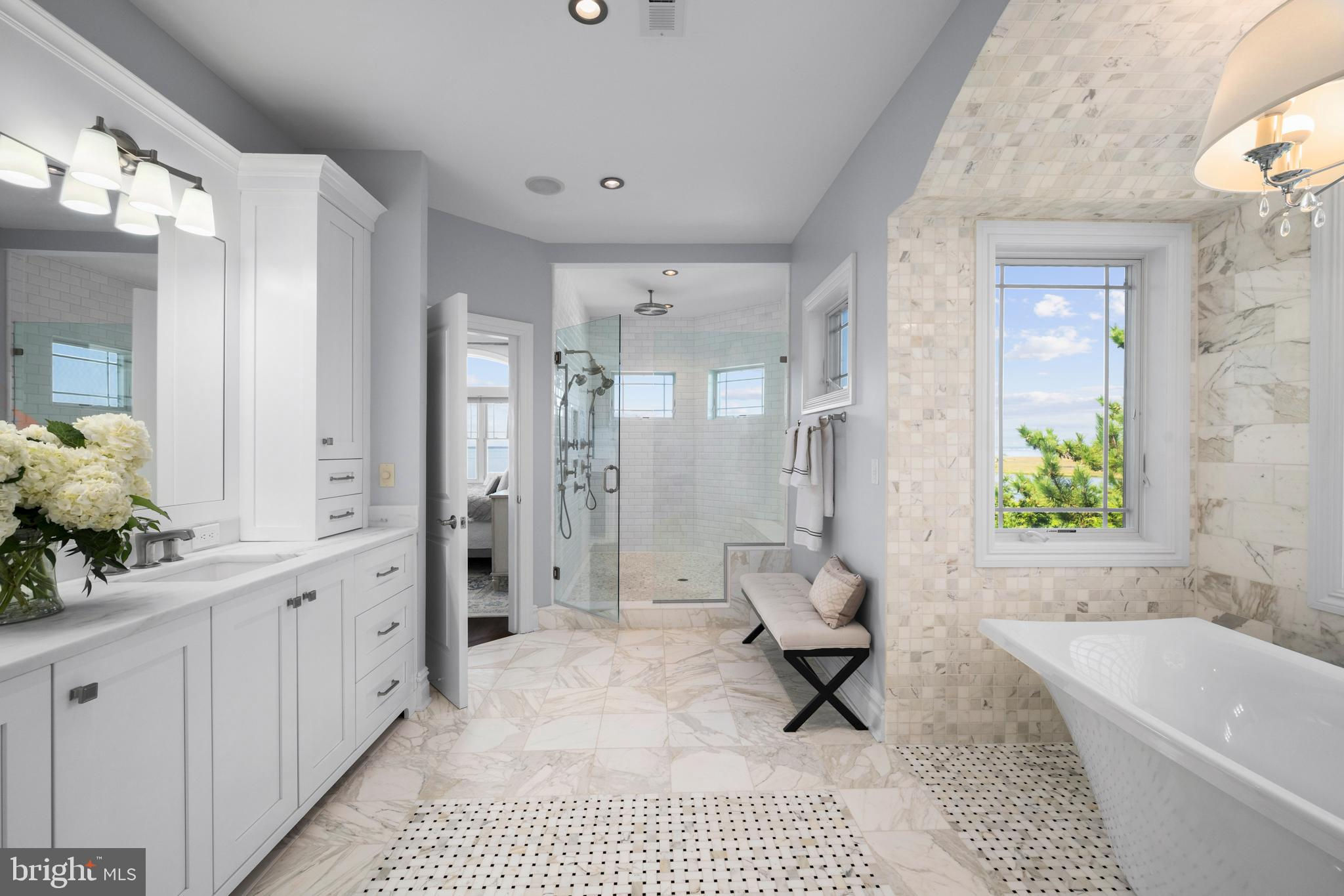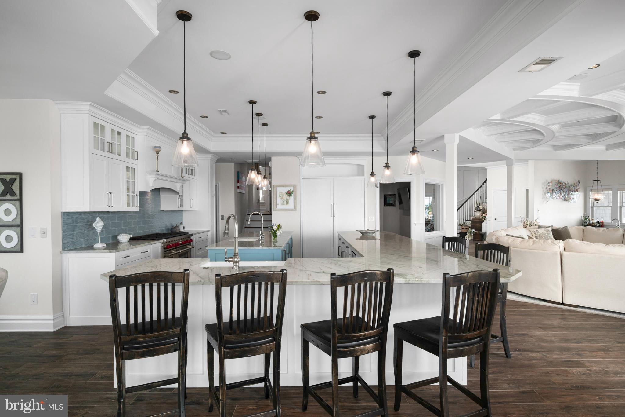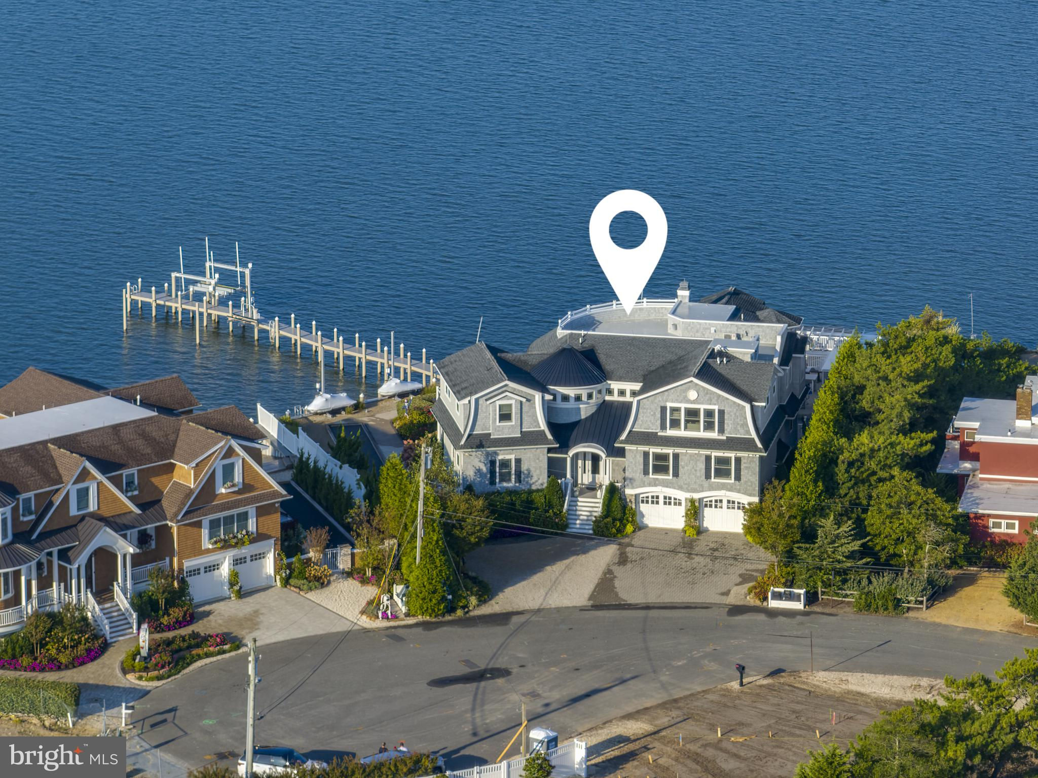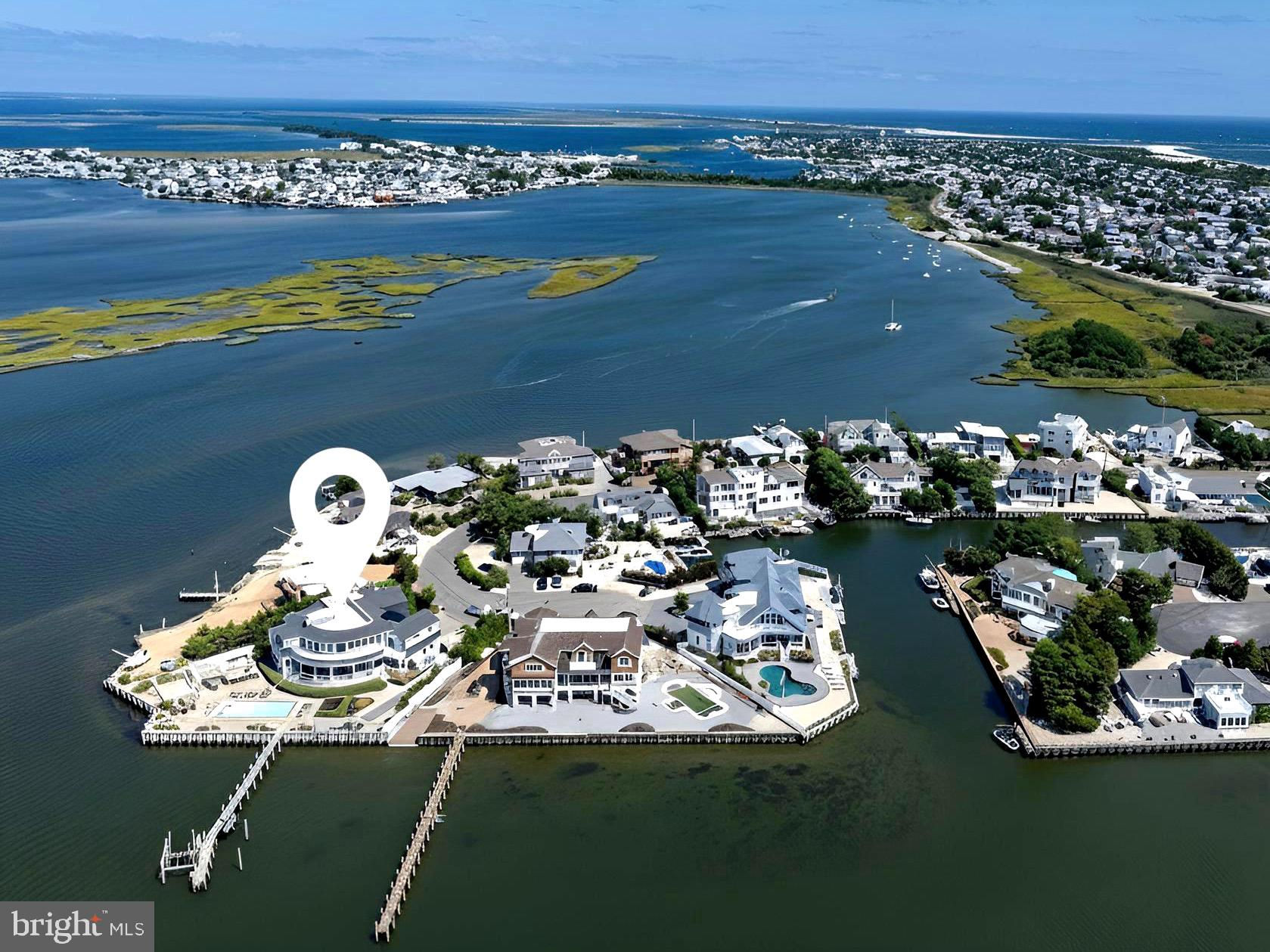 Welcome to one of Long Beach Island’s most coveted bayfront estates—an extraordinary legacy property offering nearly 200 feet of south-facing bayfront, a deep-water dock, boat lift, and multiple wave runner lifts. Perfectly positioned on a rare point location, this Estate captures panoramic bay views and spectacular sunsets that paint the sky every evening. Spanning 6,309 sq. ft. of refined coastal living, the home is thoughtfully designed with a user friendly non-reverse living layout, allowing effortless indoor-outdoor flow and immediate access to your private waterfront pool, hot tub, and outdoor grille bar. Walls of glass frame the sweeping Barnegat Bay, while multiple sitting areas, a sunken bar, and expansive decks create an inviting environment for hosting large gatherings. At the heart of the home is a gourmet chef’s kitchen with dual islands, equipped with the finest Sub-Zero, WOLF, and Miele appliances—perfect for entertaining on any scale. With seven en-suite bedrooms, seven full baths, and two elegant powder rooms, there is ample room for family and guests. The primary suite, perched high above the bay, offers unmatched privacy and commanding water views. A dedicated kids’ bunk room ensures fun, comfort, and convenience for younger visitors. There are four luxurious bayfront bedroom suites taking full advantage of the Estate’s copious water-frontage. Step outside to your own resort-style setting featuring a 14’ x 40’ fiberglass pool with a lounging shelf, surrounded by expansive patios designed for sun, relaxation, and waterfront enjoyment. The outdoor kitchen, complete with granite countertops and a shaded trellis, is ideal for alfresco dining and sunset cocktails. A four-stop elevator provides seamless access across all levels, completing this remarkable bayfront retreat where luxury, comfort, and unmatched water frontage converge. 2 car garage with ample storage space for all of your water toys. Shown by advanced appointment only listing agent must accompany.