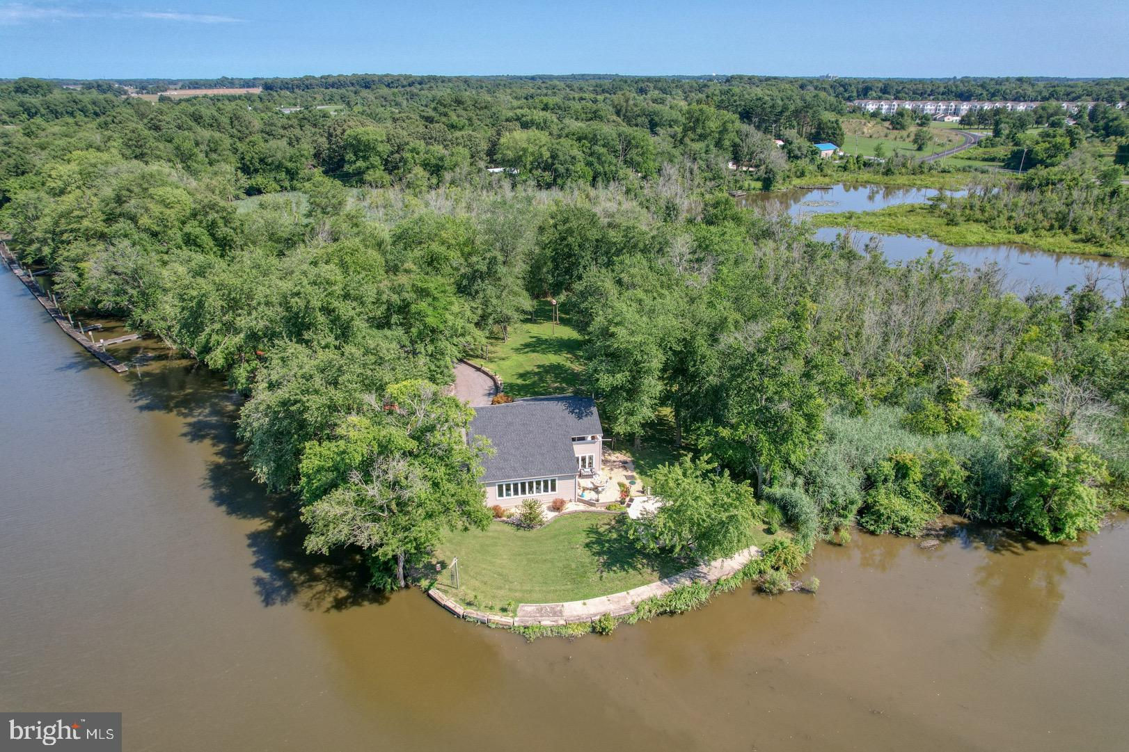 Welcome to the Riverhouse Marina, your very own private resort situated on over 8 acres of pristine waterfront land and gated property. This exclusive retreat offers over 500 feet of dock space equipped with water and electricity, and approximately 1,000 feet of serene waterfront on the Mispillion River, with quick, deep-water access to the Delaware Bay. The property includes three RV hook-up areas with ample space to expand, a pavilion, and a Tiki Bar area, making it perfect for hosting events. With plenty of parking space, Riverhouse Marina is an ideal venue for events and gatherings. The home itself offers nearly 360-degree water views from every room. The primary suite boasts a massive walk-in closet and a private balcony. Key features include a newer roof installed within the past 2 years with a transferable warranty, a gas fireplace for warmth and ambiance, a vaulted ceiling that creates an open, airy feel, a kitchen island perfect for cooking and entertaining, hardwood floors throughout the first floor of home, and a convenient first-floor bedroom. With no HOA restrictions, you can explore the potential of earning income through many opportunities such as Airbnb and Hipcamp to name a few. This property is like having your own private state park, whether you enjoy boating or just relaxing on the dock for the day, this is where you want to be! Additionally, it includes two golf carts for easy exploration of the grounds and a large outbuilding for boat storage and all your toys. Enjoy stunning water views, abundant wildlife, and nature at its best.Located just a few minutes from the city of Milford for shopping and dining, with quick access to Route 1, Delaware Bay beaches are a mere 10 minutes away, and Delaware resort beaches are about 30 minutes away. Don't miss the opportunity to own this unique property that combines luxury, privacy, and income potential. You won’t find anything else like this! Riverhouse Marina awaits your visit!Be sure to check out the very detailed video tour in the virtual link!