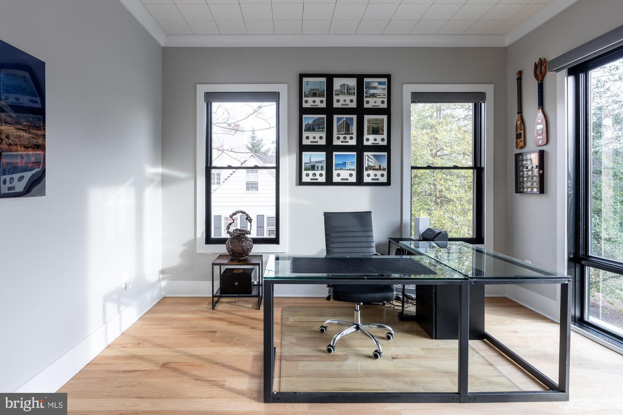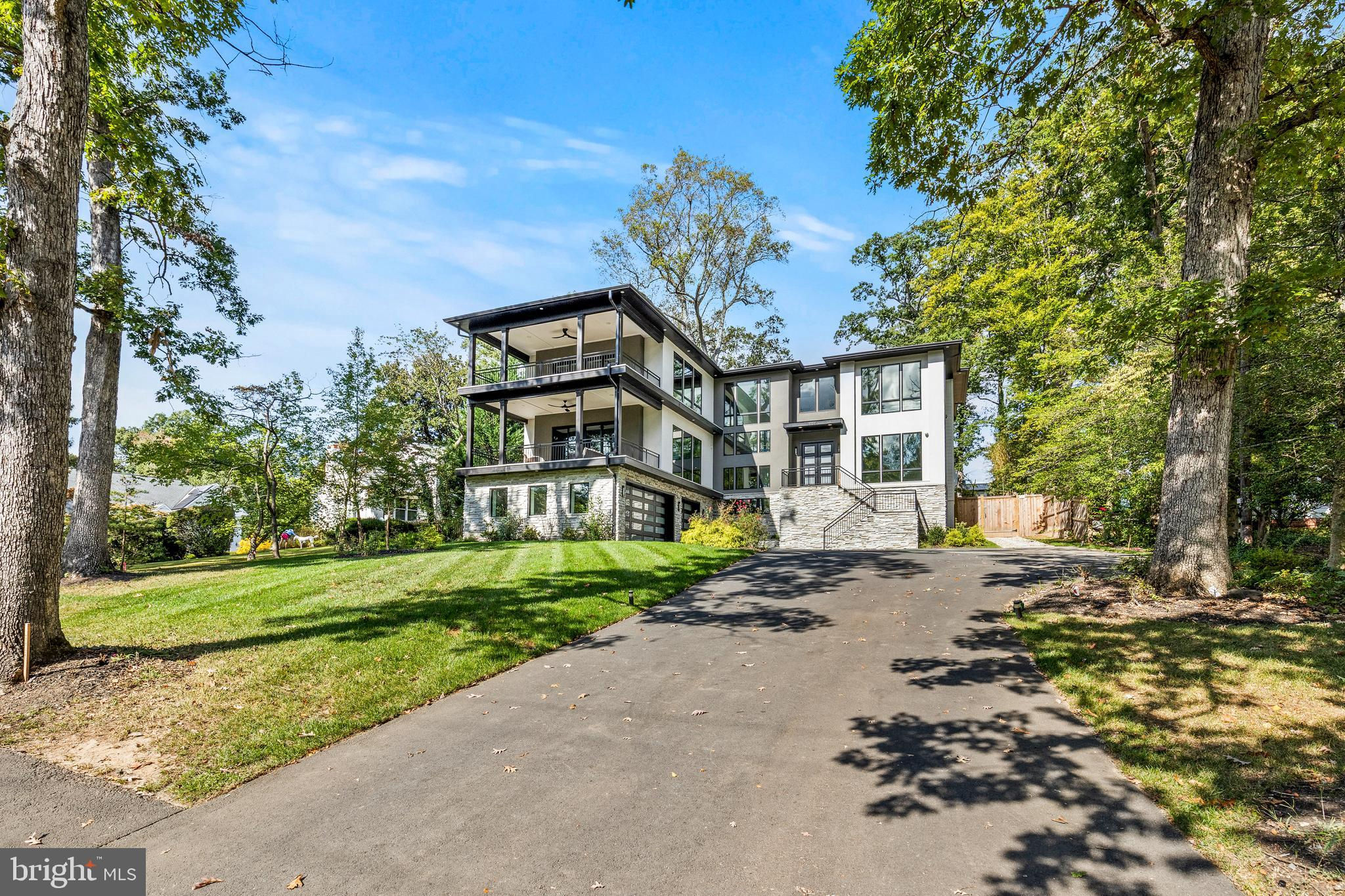 Contemporary home in McLean, built by Green Valley Custom Builders. Set well back from the street, the property rests on a deep lot with mature trees and a strong, private elevation.The home offers more than 9,400 square feet across three levels, with six bedrooms, two offices, and eight bathrooms. A two-story great room anchors the main level, framed by a gallery overlook and a full wall of windows facing the expansive rear yard. This gathering anchor supports grand-scale hosting, surrounded by more intimate formal spaces.The main kitchen features custom cabinetry, high-end appliances, and a large central island. Beyond it are the catering kitchen, wine bar, and walk-in pantry.The primary suite opens to a large private terrace through double glass doors and windows, all protected by automated shades. A private bar sits within the suite. The spa-style bathroom offers an oversized walk-in shower, freestanding tub, and heated floors.The lower level features a full bar, wine storage, a gym, a theater room, and a guest suite. The immaculate three-car garage opens directly into organized built-in storage and a dedicated dog wash. An elevator shaft is already framed for future installation.Outside, the tree-lined and fully fenced yard comes with a fantastic deck with a fireplace, built-in heaters, and cooking space, and yes, it can support a future pool and terrace.Located in a sought-after McLean community near downtown, the property offers privacy, scale, and convenience with direct access to the heart of McLean and a very comfortable commute into Washington, D.C.
